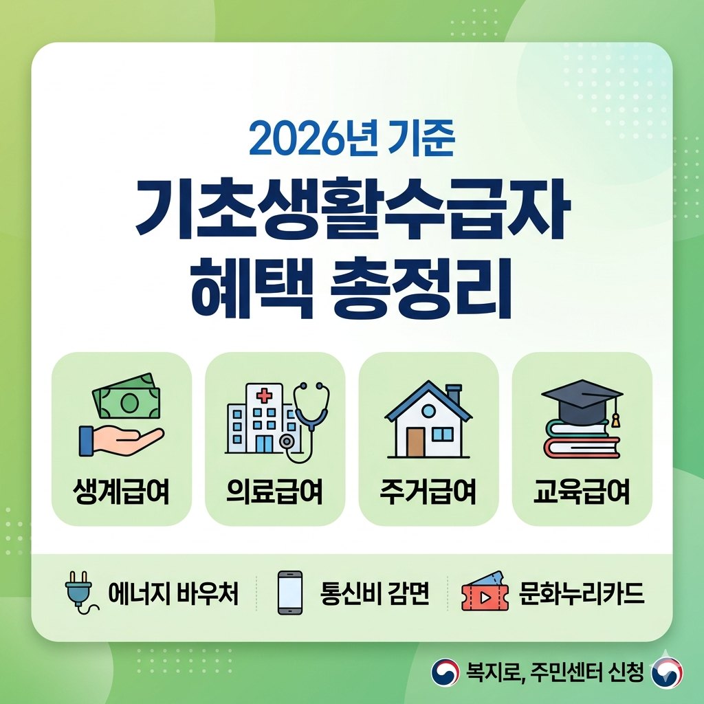 기초생활수급자는 일정 소득 이하로 생활이 어려운 가구를 대상으로 국가가 생계, 의료, 주거 등을 지원하는 제도입니다. 단순 현금 지원 뿐 아니라 생활 전반에 걸친 다양한 혜택이 제공됩니다.